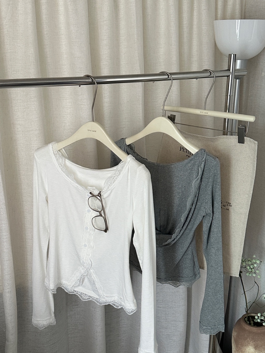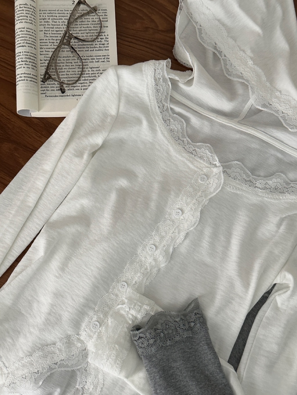 UU.self-( 預購最後數量)心動初戀 蕾絲連帽上衣2colors
