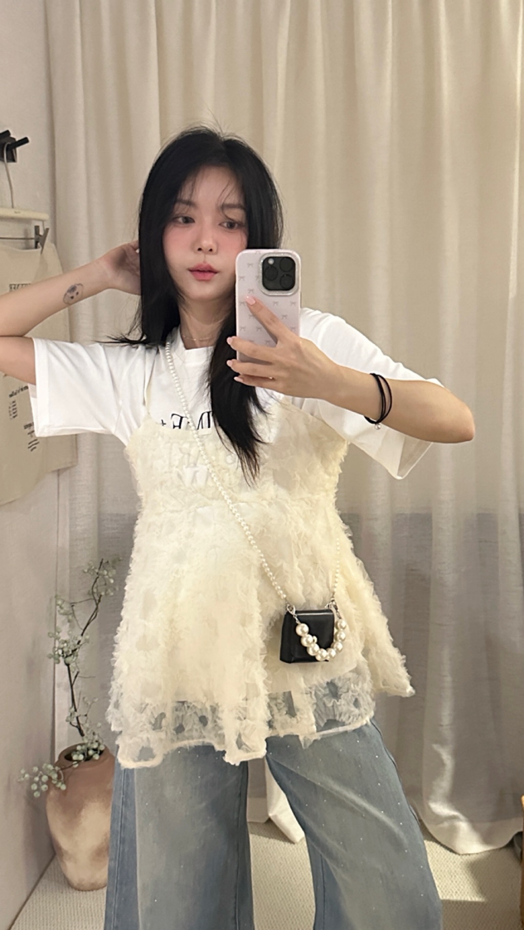 UU.self- 雲朵花紗立體造型細肩背心