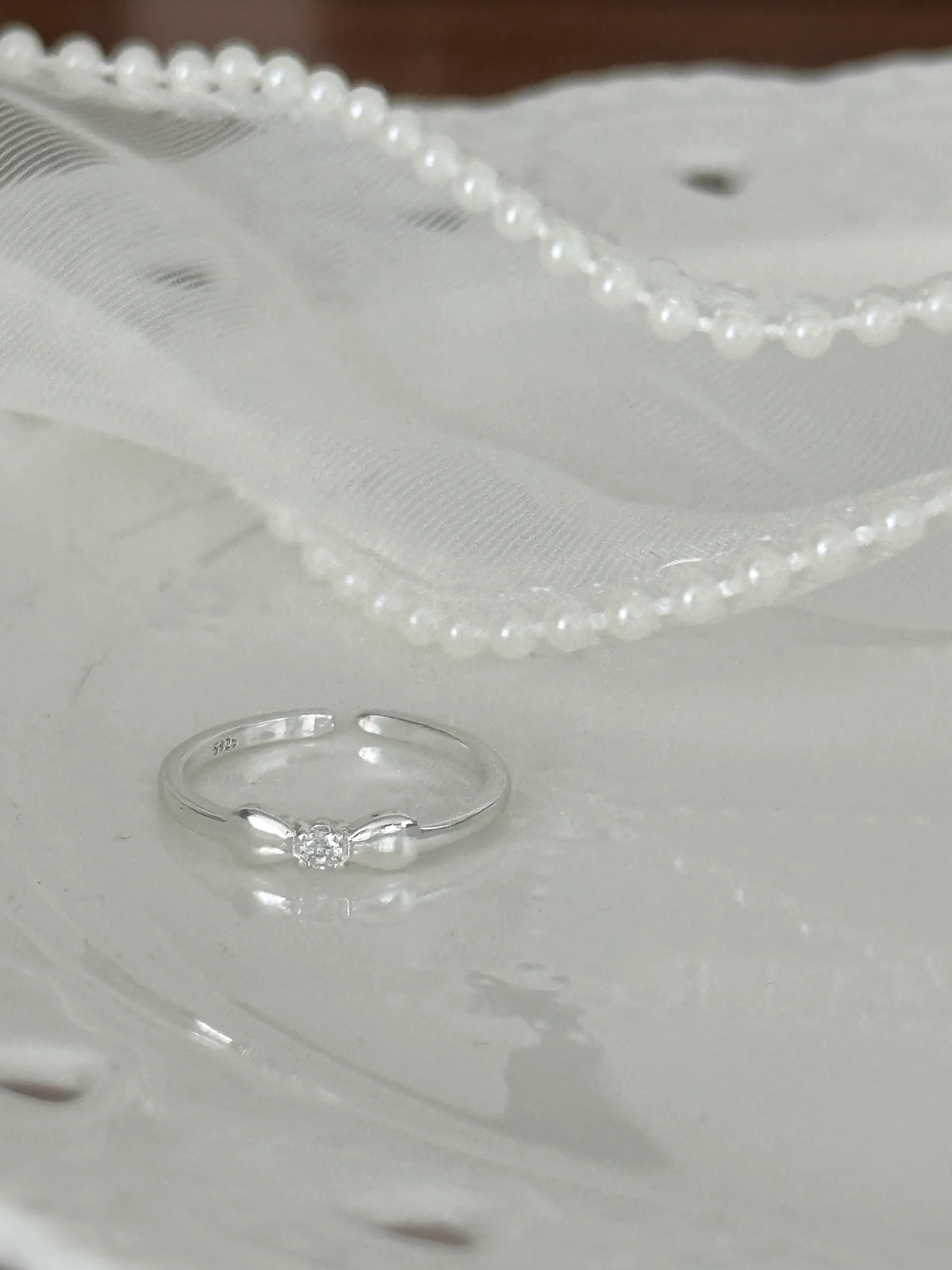UU.self- 戴在手上的日常浪漫 蝴蝶結單鑽開口戒(925 silver)