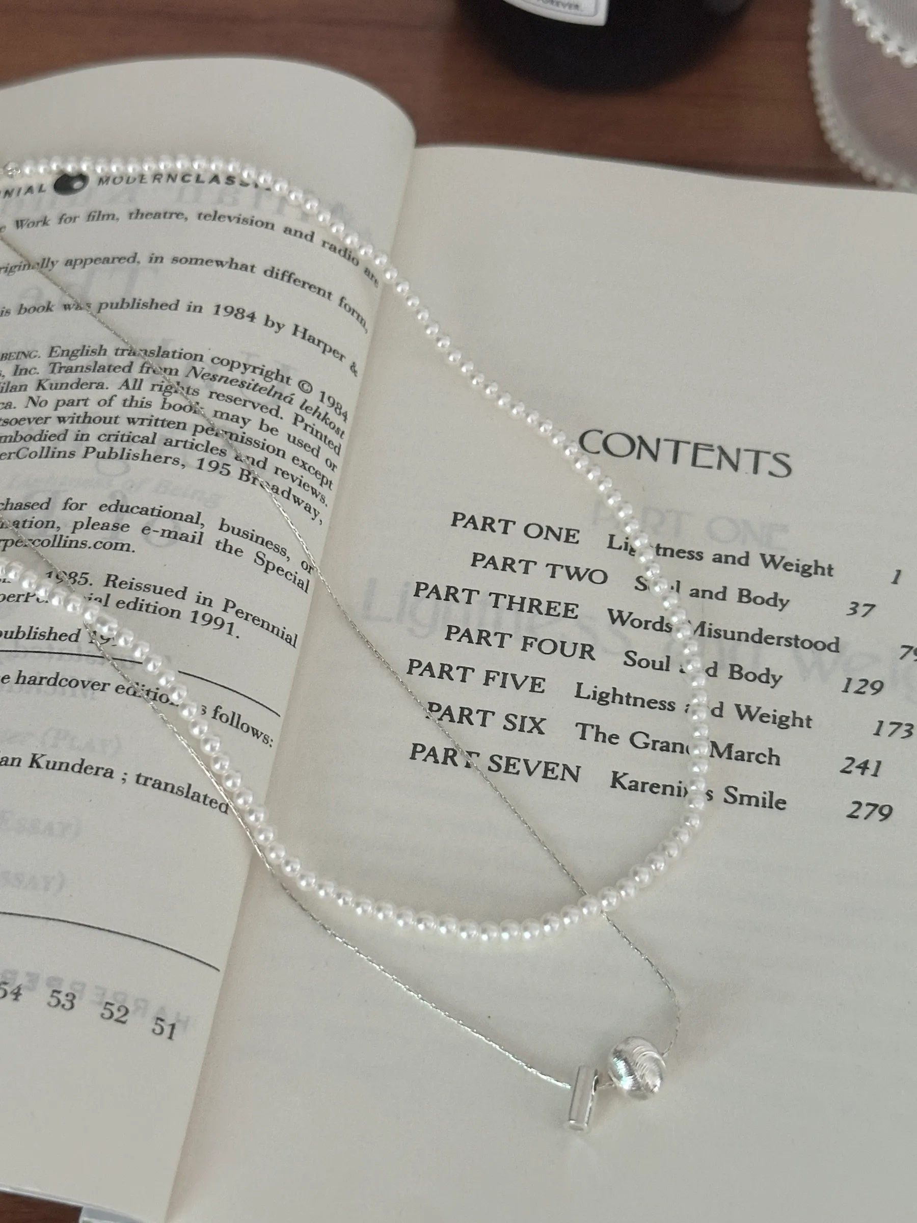 UU.self- 白色夢嶼 珍珠小銀球雙層項鍊