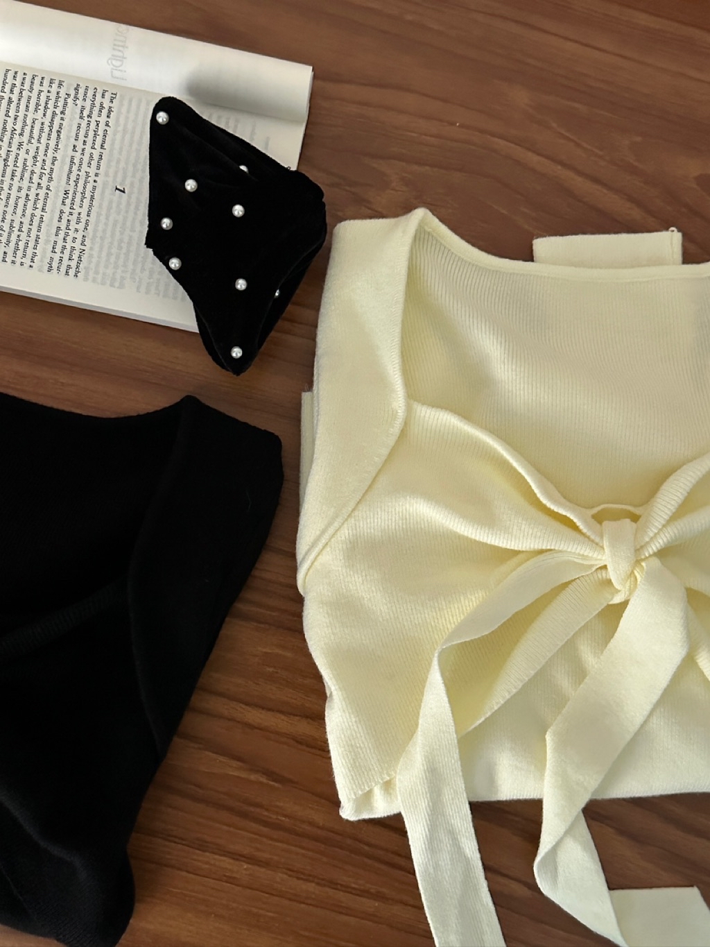 UU.self- 珍藏緞帶 立體蝴蝶結修身針織上衣2colors