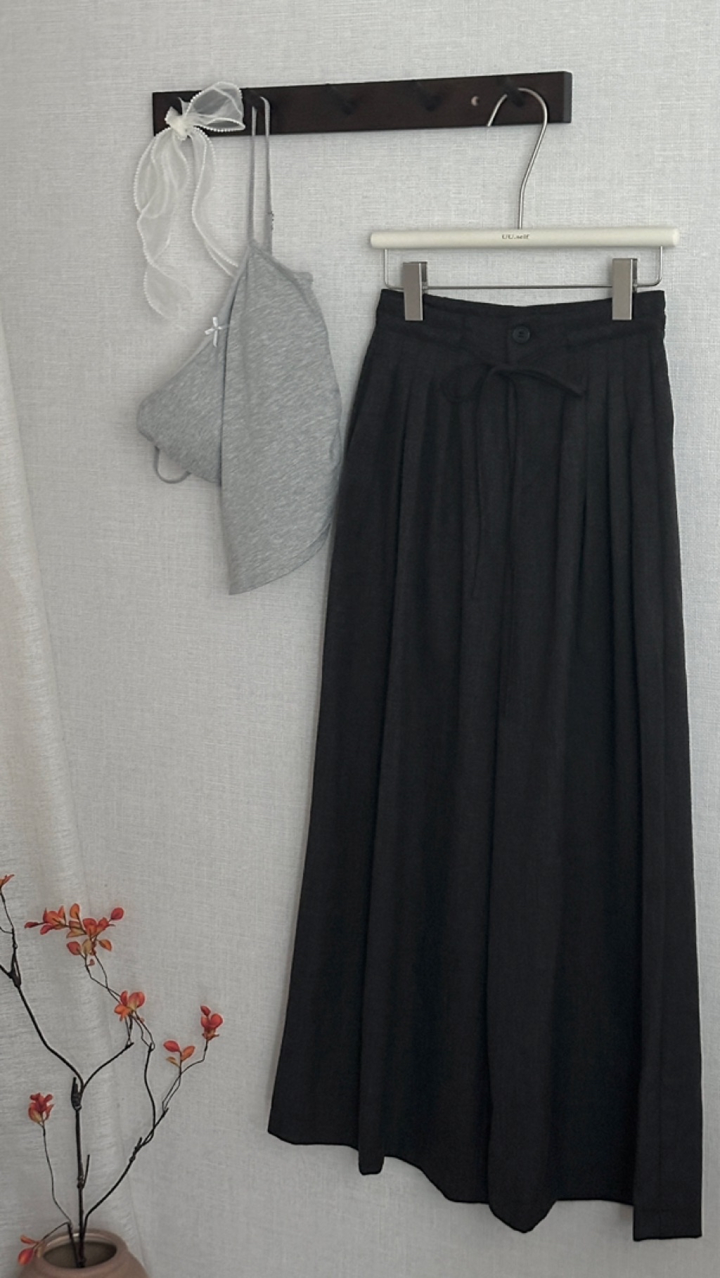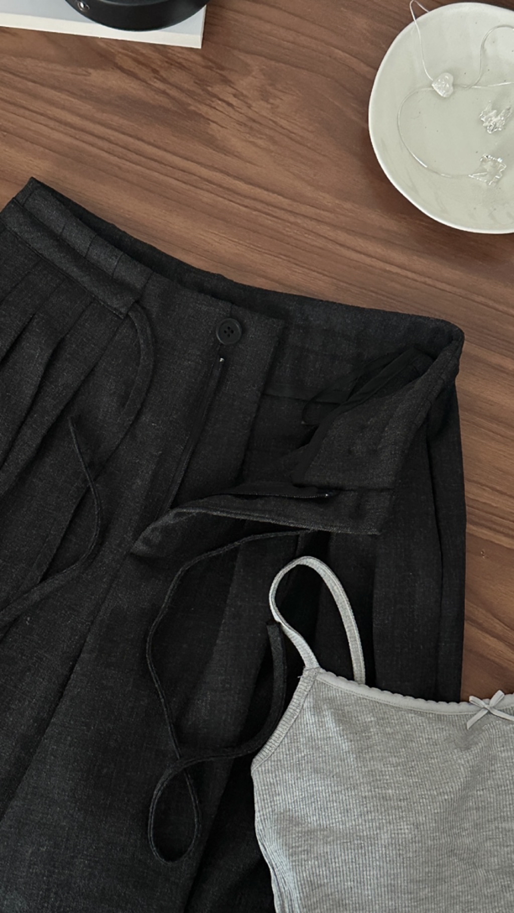 UU.self- 《梨形友善》暮黑色俐落垂墜寬褲