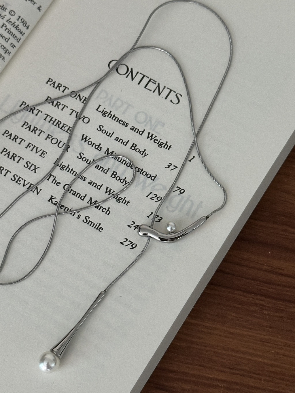 UU.self- 銀色月灣 抗敏鈦鋼珍珠調節長鍊