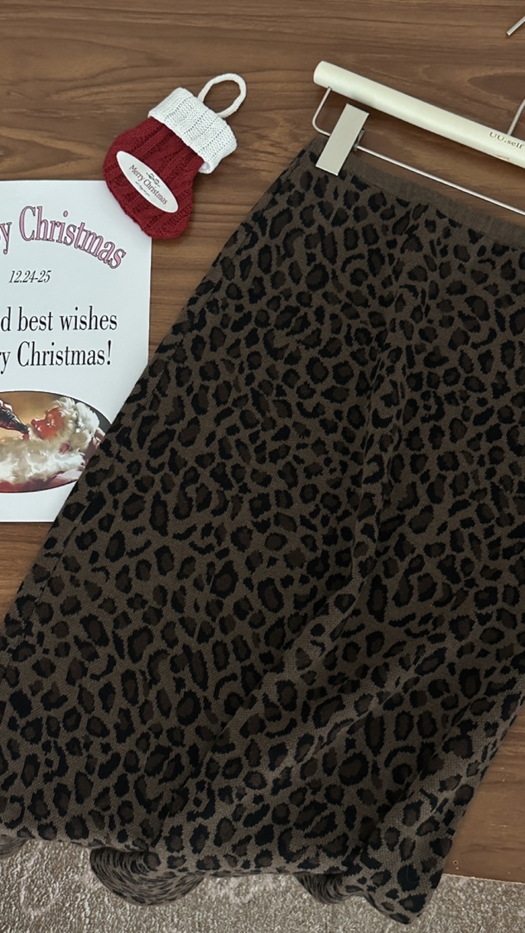 UU.self- 溫柔豹語 針織豹紋A字長裙