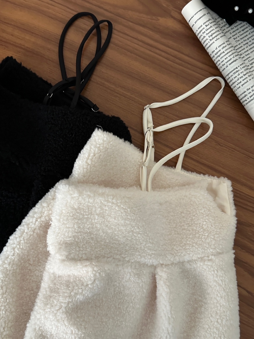 UU.self- 軟呼小熊羔毛可調肩帶背心 2colors